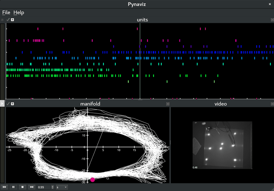 Pynaviz provides interactive, high-performance visualizations designed to work seamlessly with Pynapple time series and video data. It allows synchronized exploration of neural signals and behavioral recordings. It is build on top of pygfx, a modern GPU-based rendering engine.